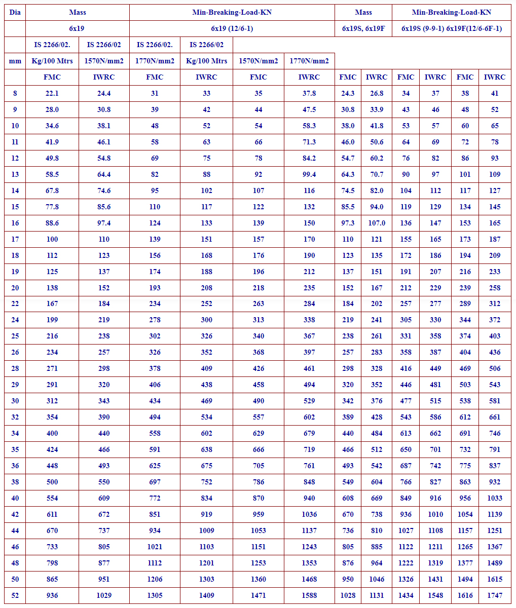 6 x 19F (12-6F-6-1) – FC – IWRC